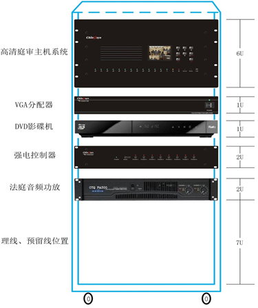 根据法院开庭的实际应用,高清庭审主机系统可接入实物展示台、电脑、DVD播放机等进行编码、展示等。